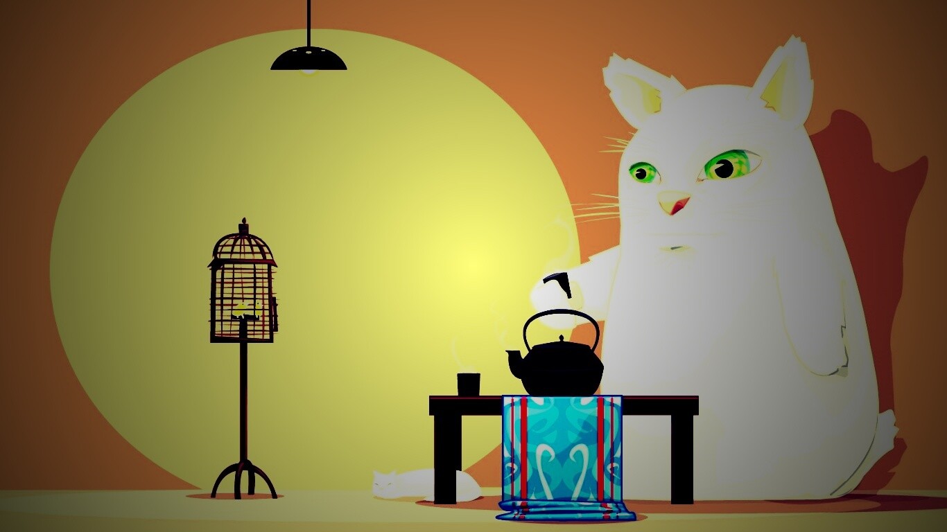 «Кот пьет чай»