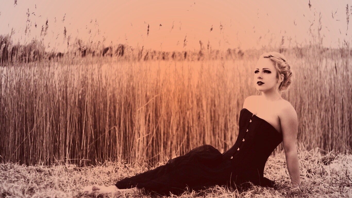 «Девушка на траве в черном корсете»
