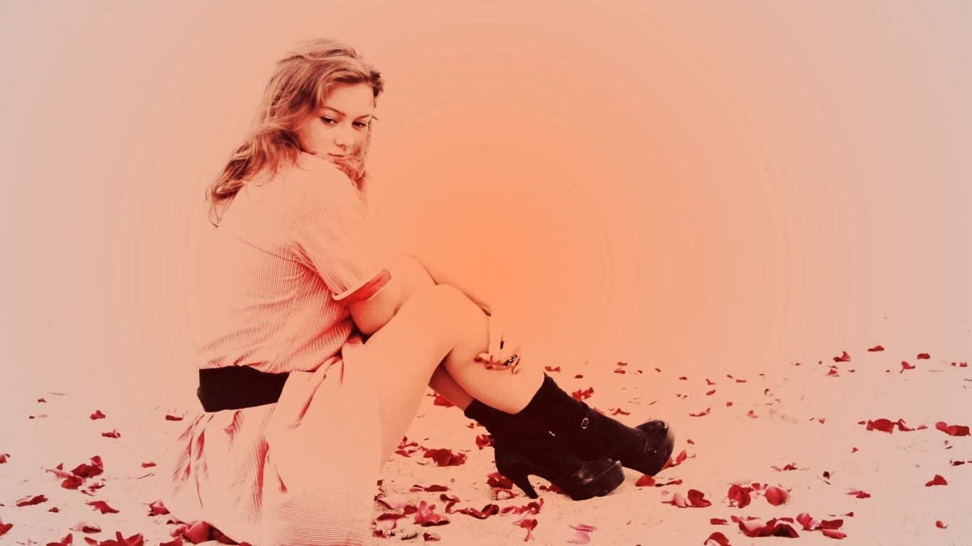 «Девушка среди лепестков на пляже»