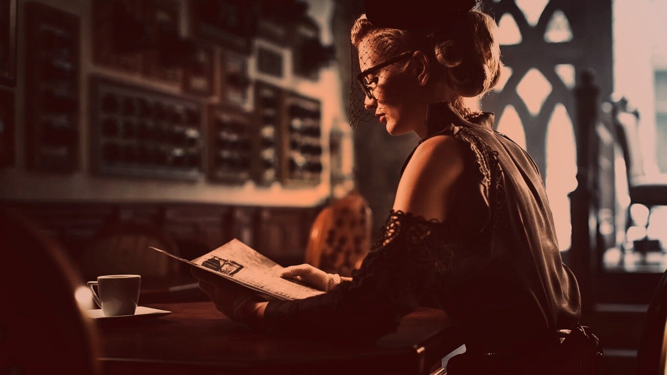 «Витажная девушка в кафе»