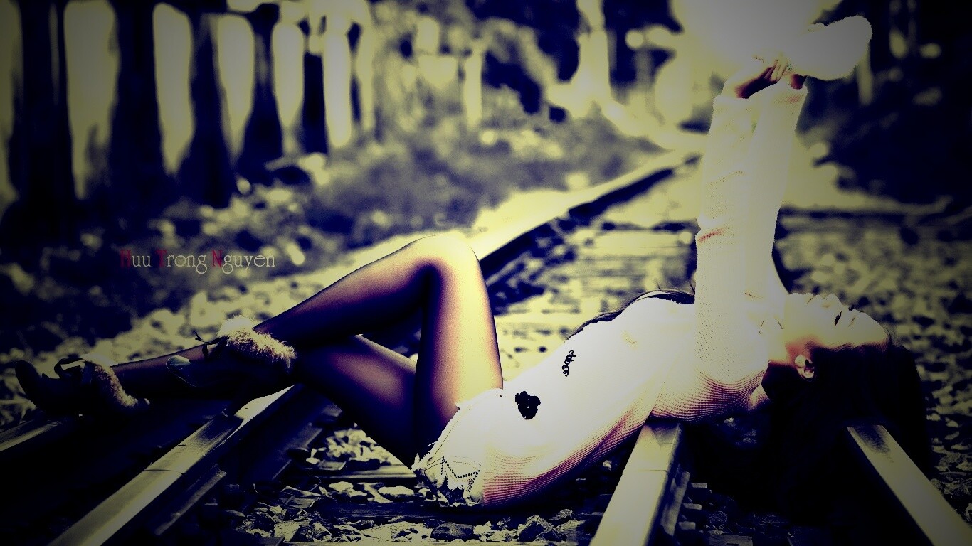 «Модель на железнодорожных путях»