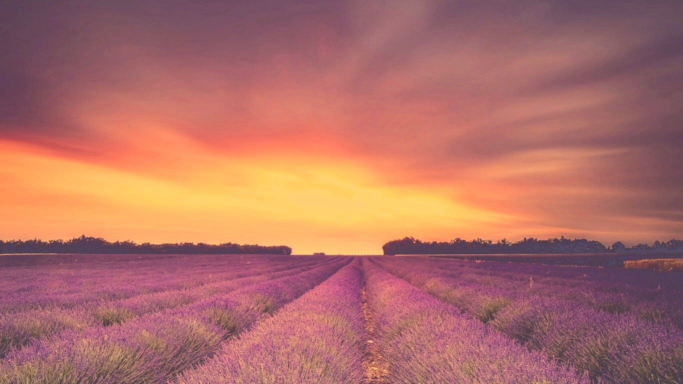 «Поле фиолетовых цветов на закате»