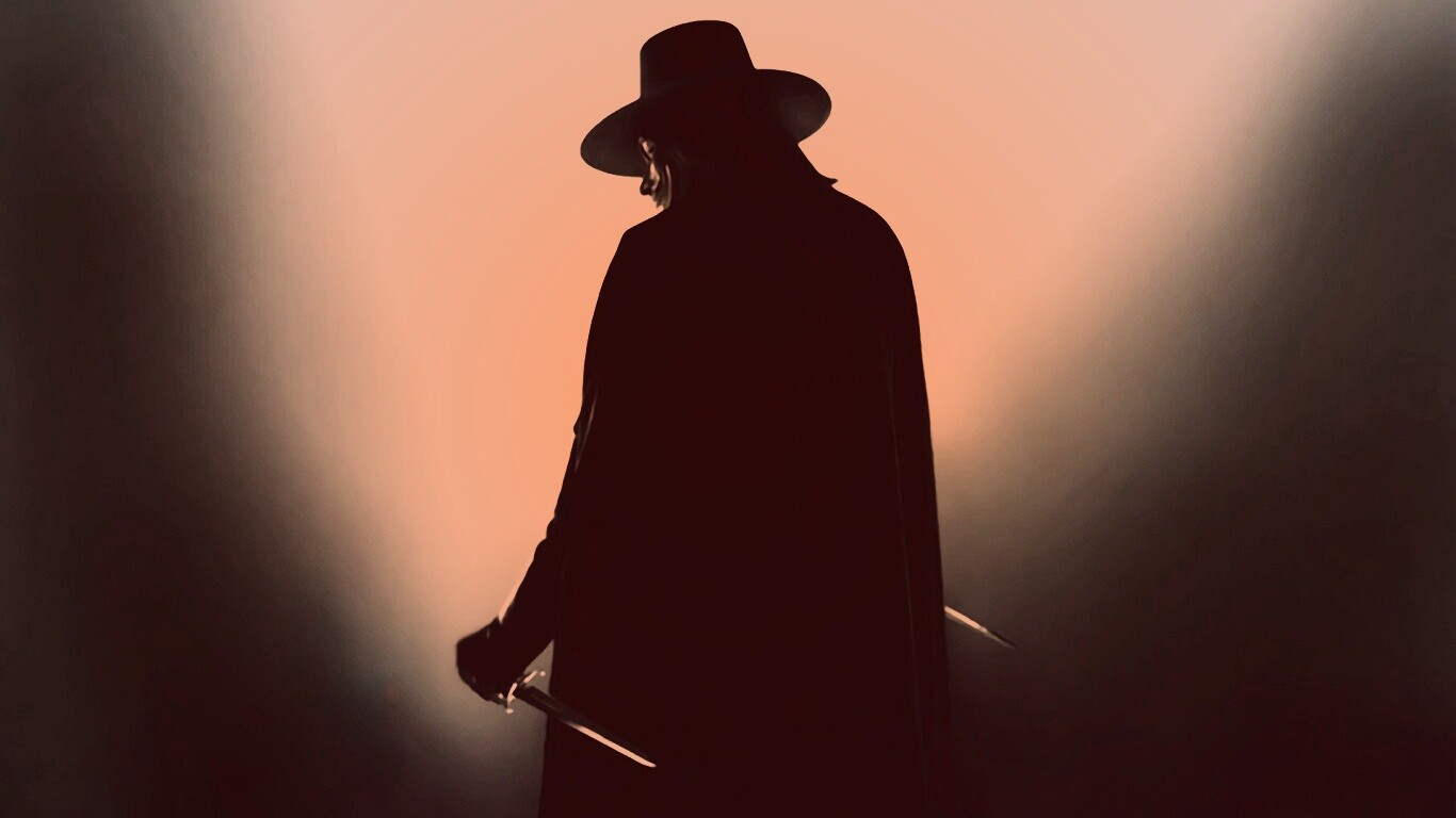 Обои для рабочего стола «V for Vendetta» 1366х768 с фильтром toaster (оригинал 1920х1080)