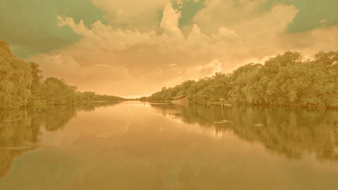 «Молнии на фоне заката, стандартные обои mac»
