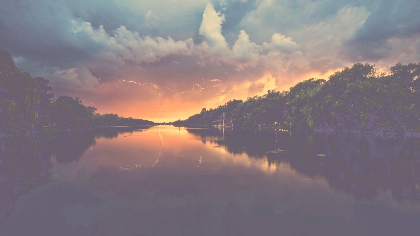 «Молнии на фоне заката, стандартные обои mac»