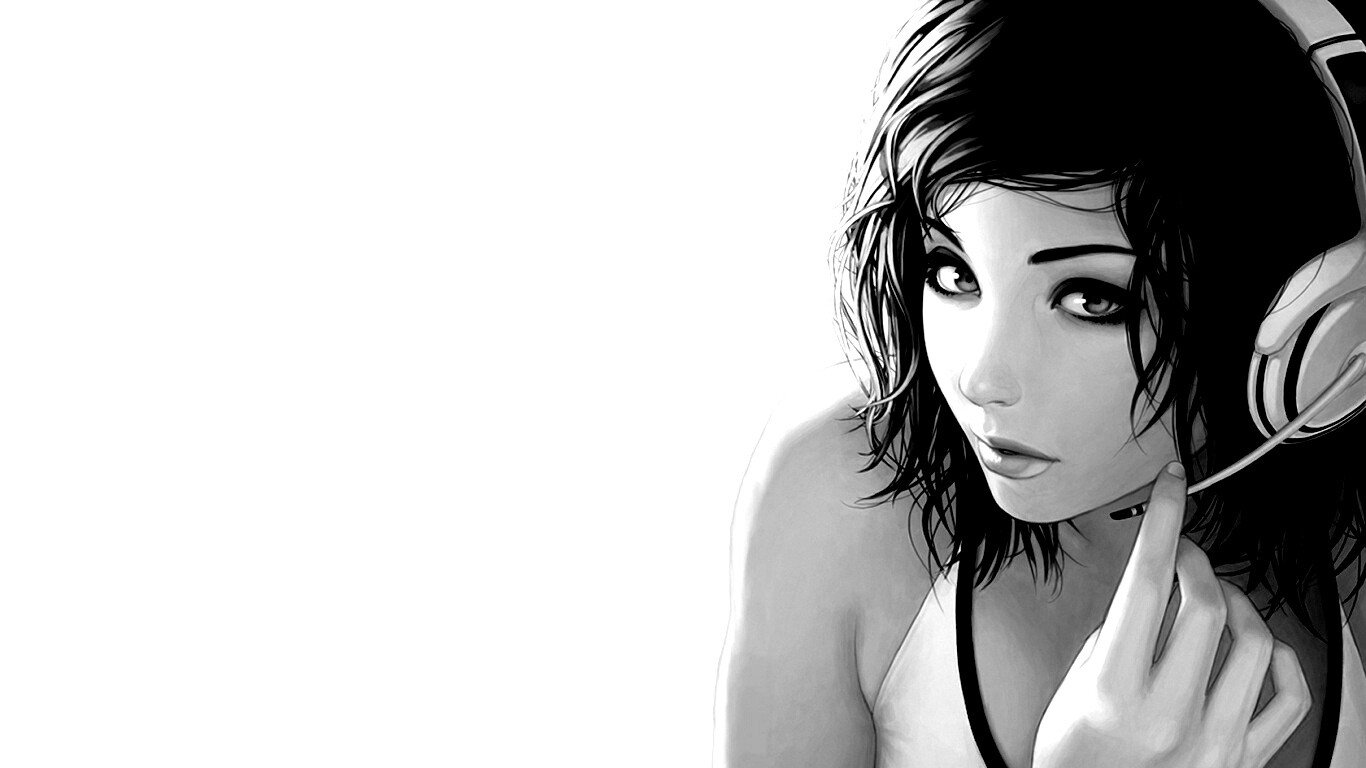 «Сексуальная девушка в наушниках с микрофоном»