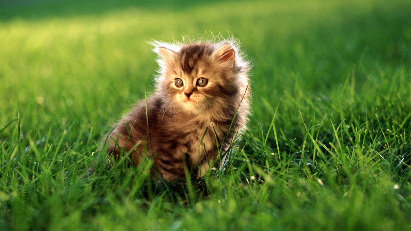 «Пушистый котенок в траве»