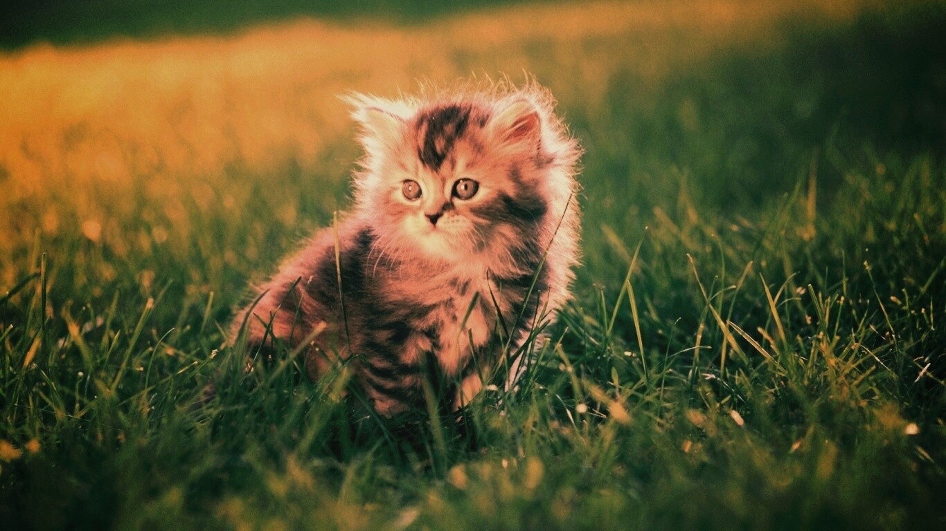 «Пушистый котенок в траве»