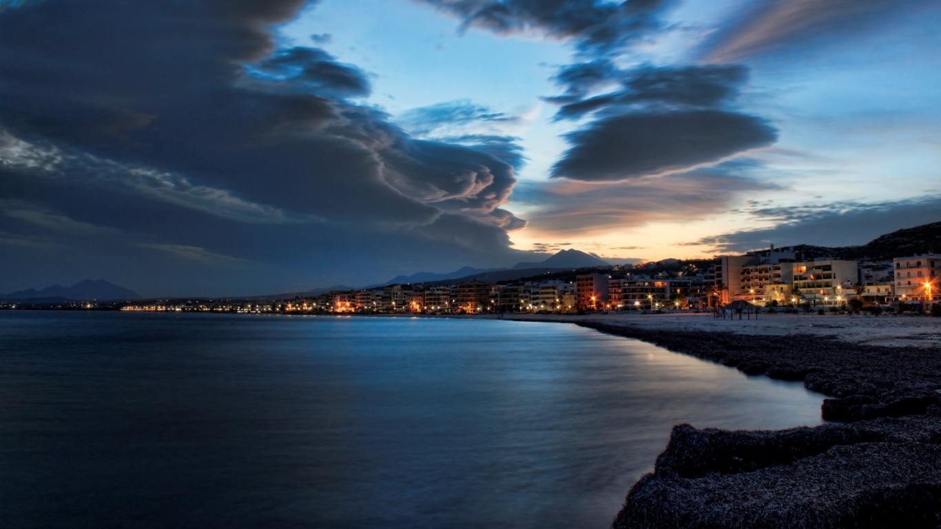 «Красивый закат над городом у моря»