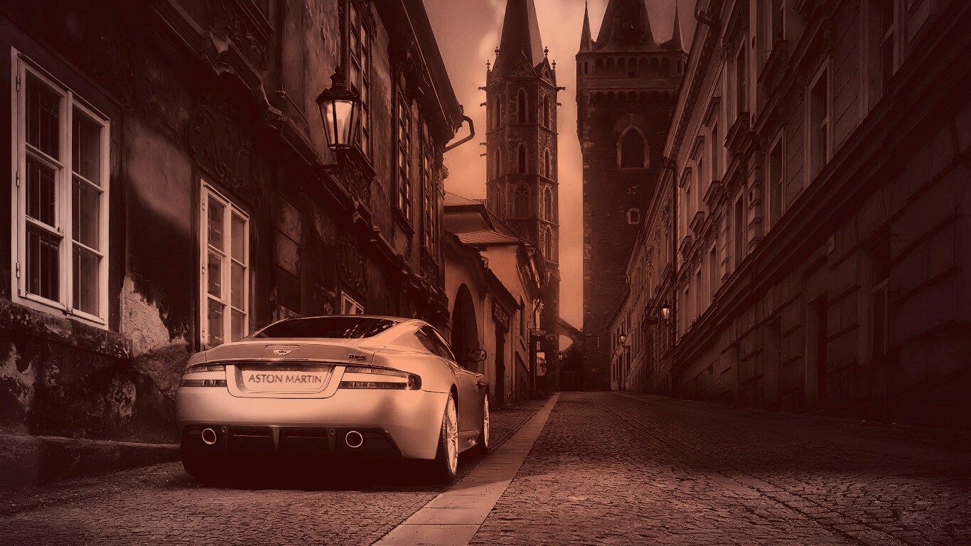 «Aston Martin в старинном городе»
