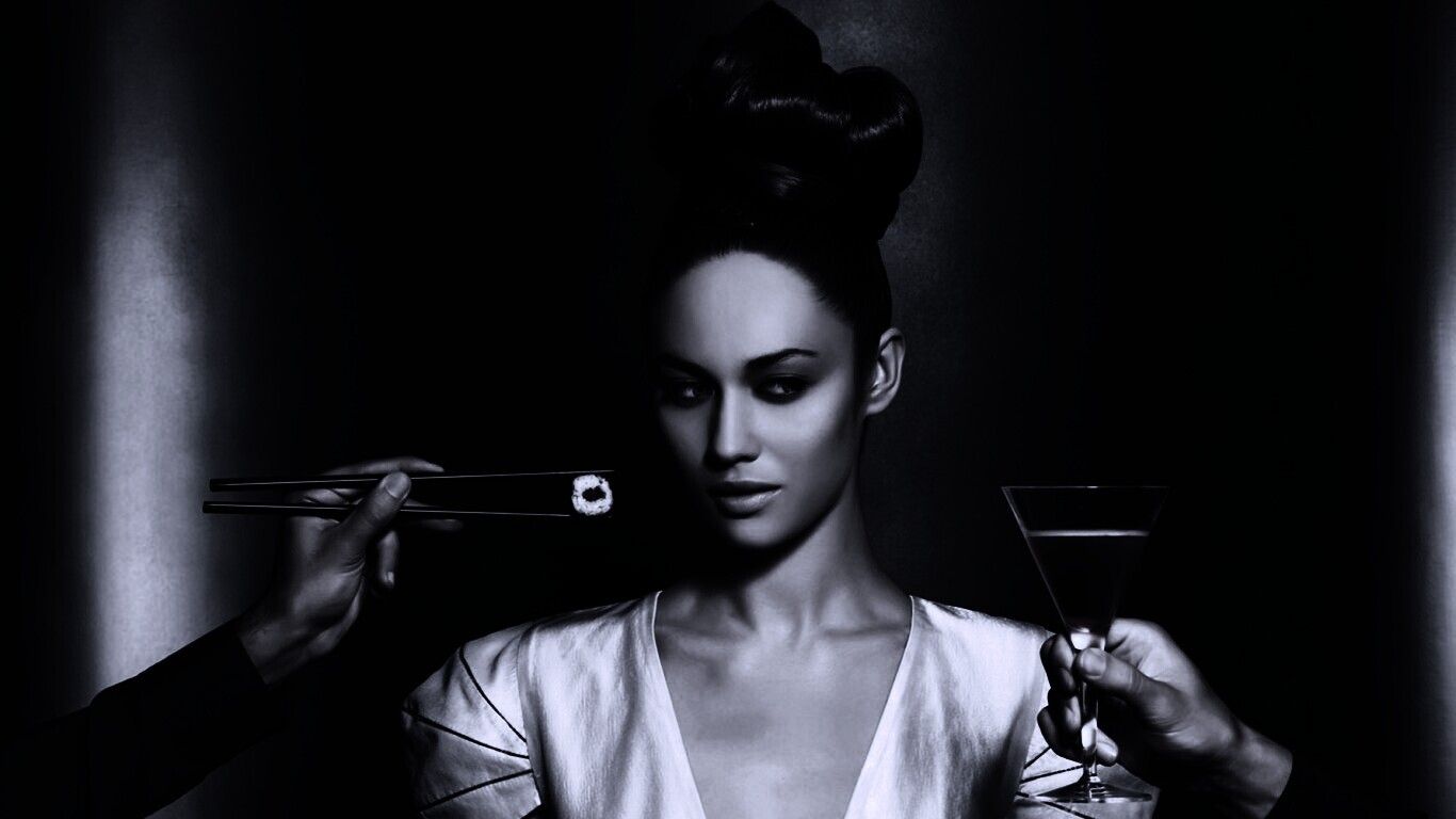 Обои для рабочего стола «Ольга Куриленко» 1366х768 с фильтром gotham (оригинал 1920х1080)