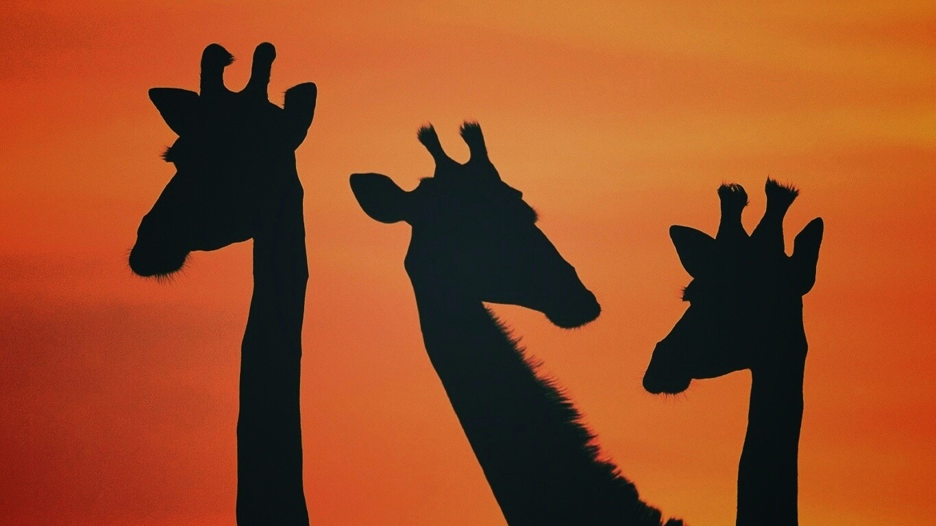 «Три силуэта жирафов на фоне неба»