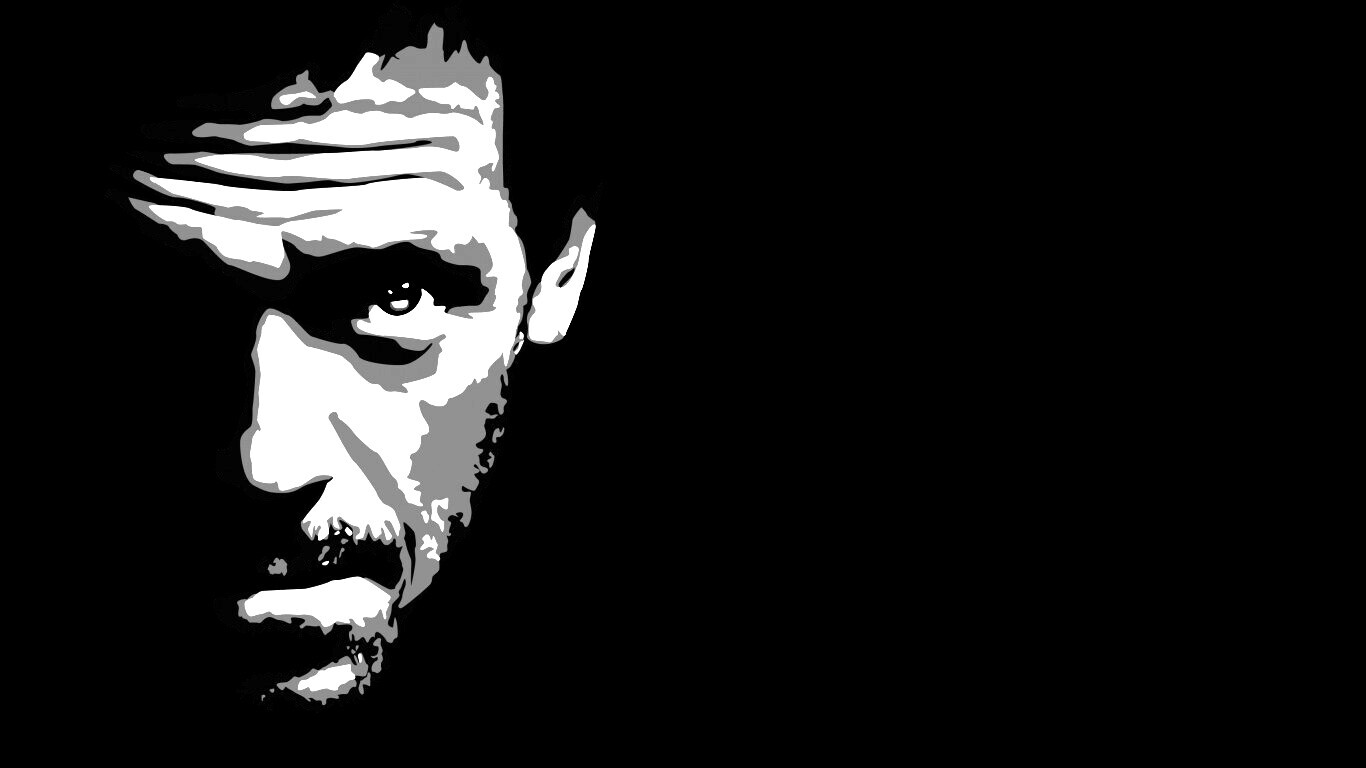 Обои для рабочего стола «Хью Лори» 1366х768 с фильтром inkwell (оригинал 1920х1080)