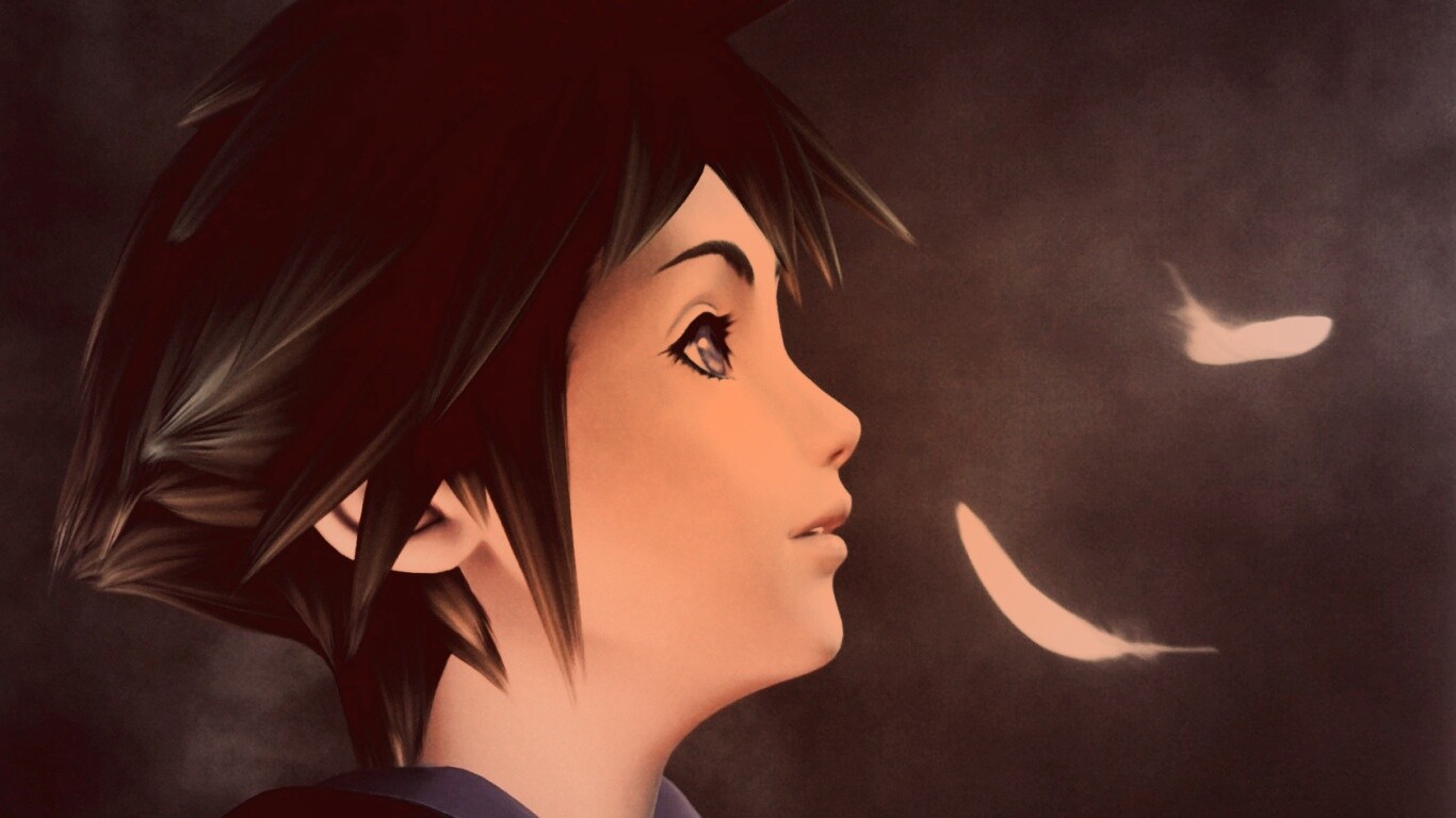 «Анимешный парень и белые перья»