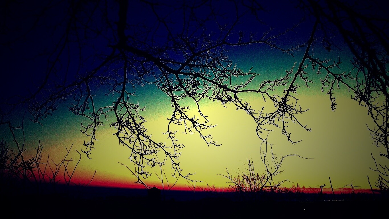 «Закат сквозь ветки деревьев»