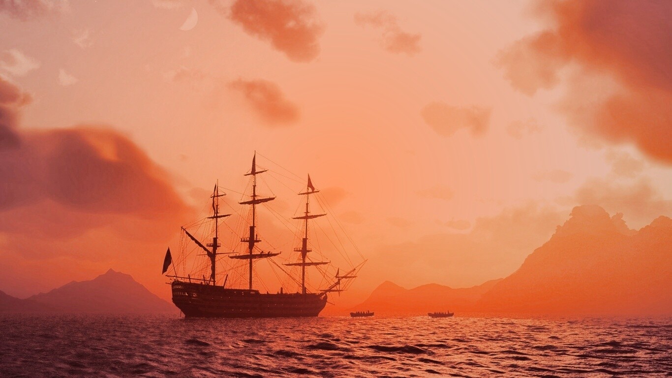 «Трехпалубный парусный корабль на закате»