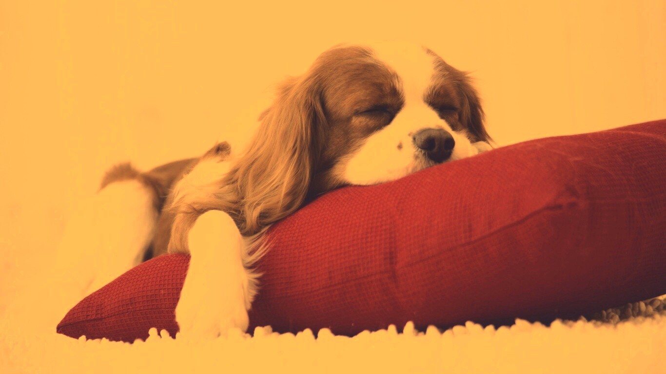 «Спящий щенок на красной подушке»