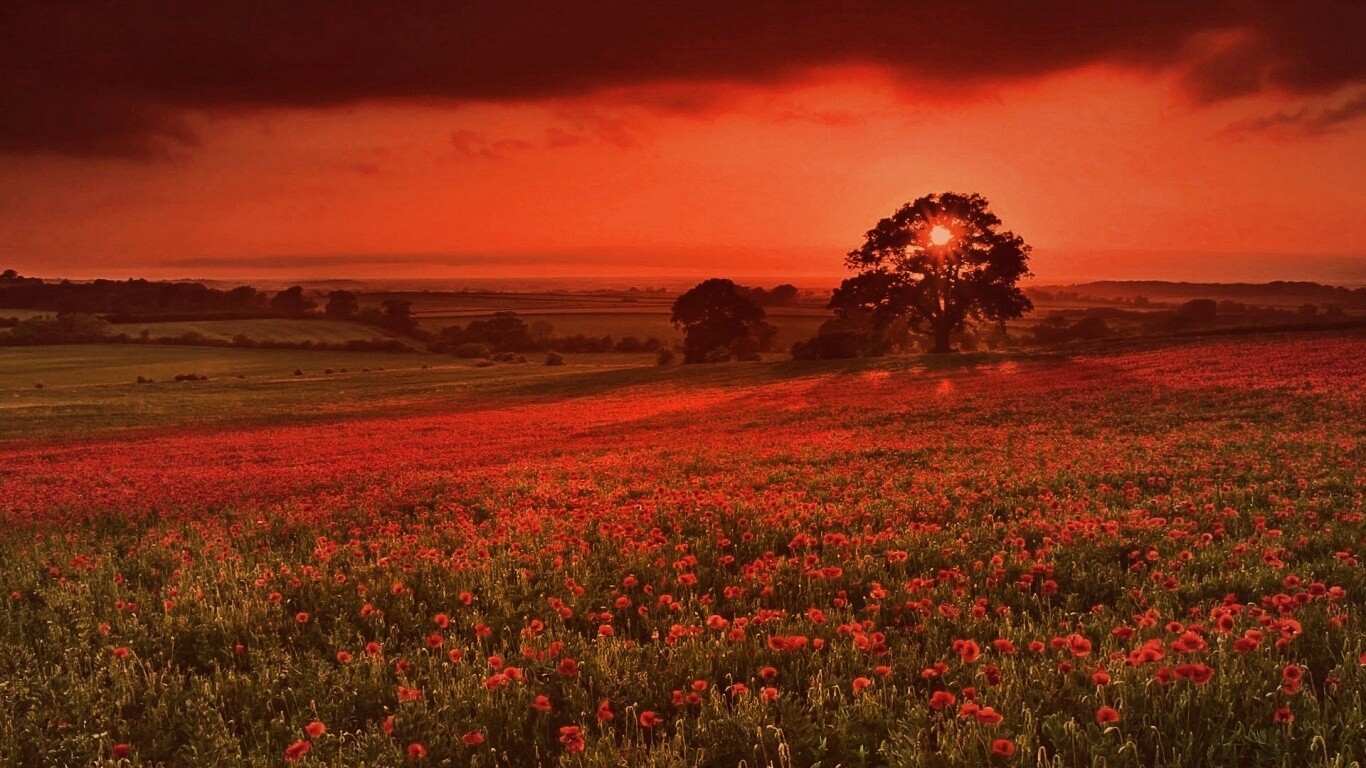 «Закат на поле красных цветов»