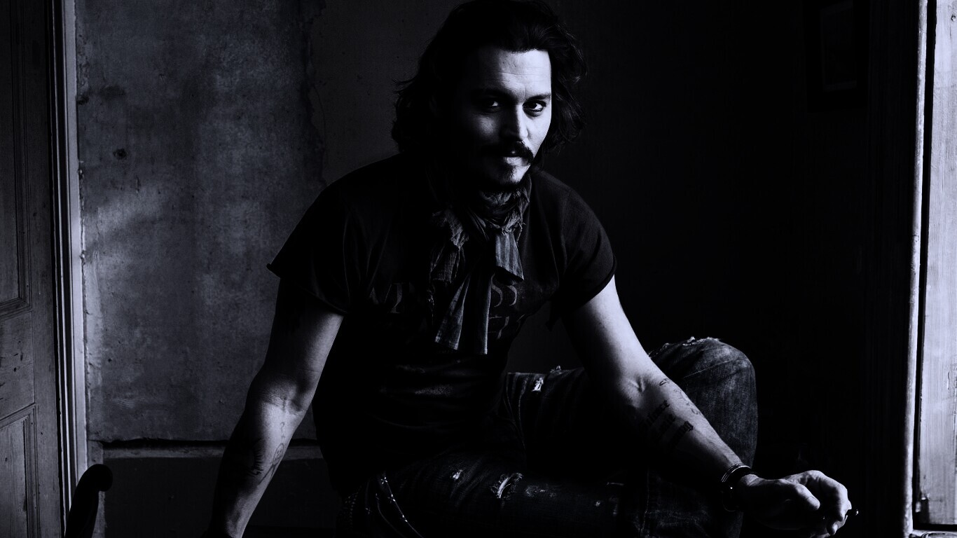 Обои для рабочего стола «Джонни Депп» 1366х768 с фильтром gotham (оригинал 1920х1200)