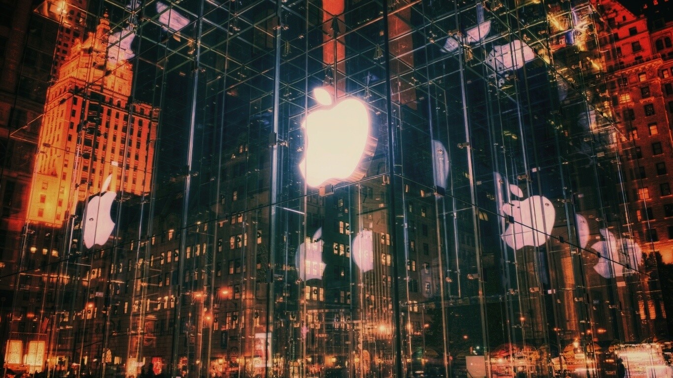 «Отражение логотипа Apple в стеклянном здании»