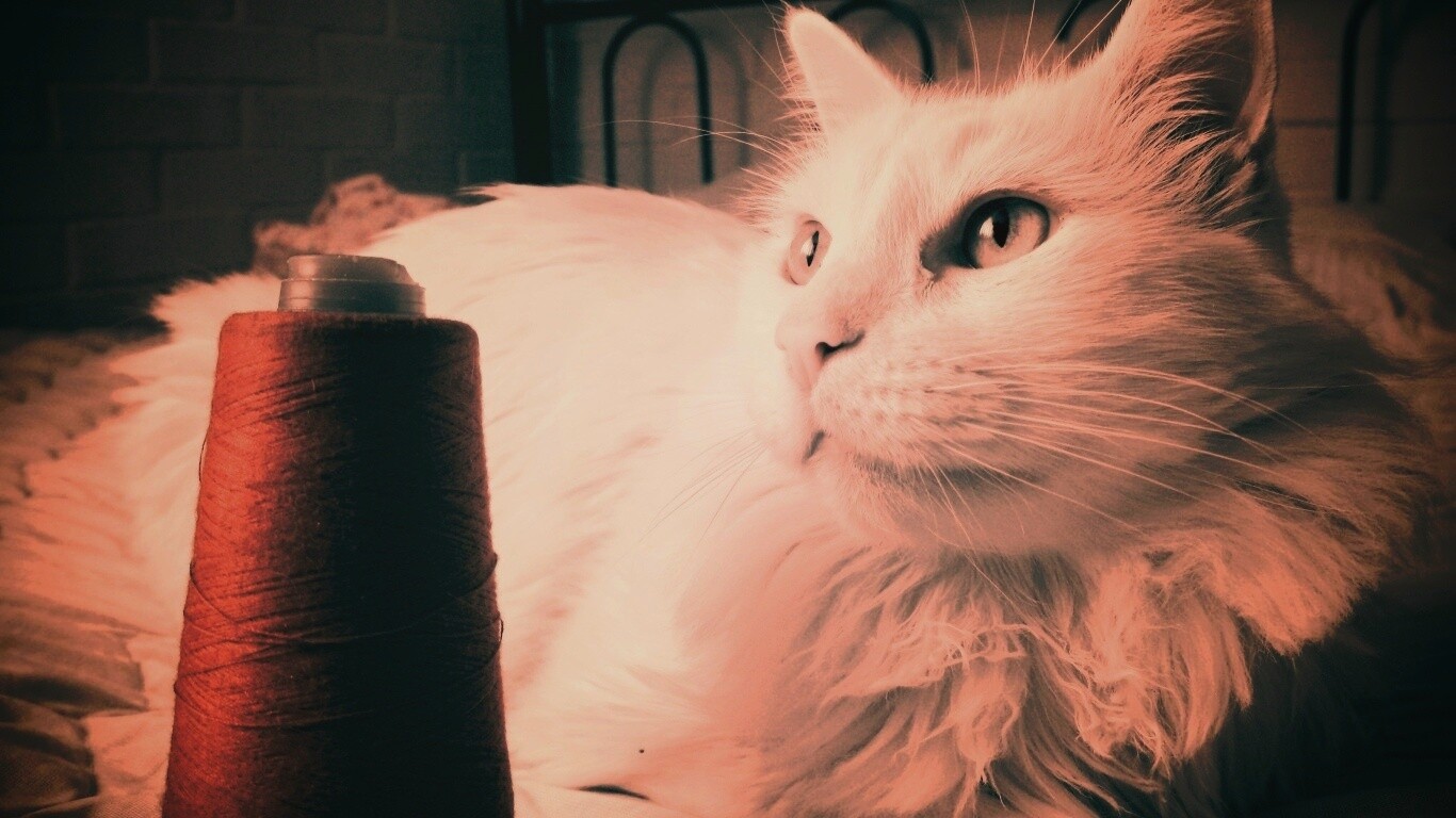 «Белый кот с катушкой ниток»