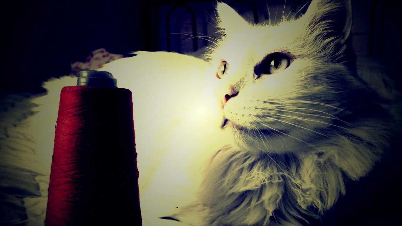 «Белый кот с катушкой ниток»