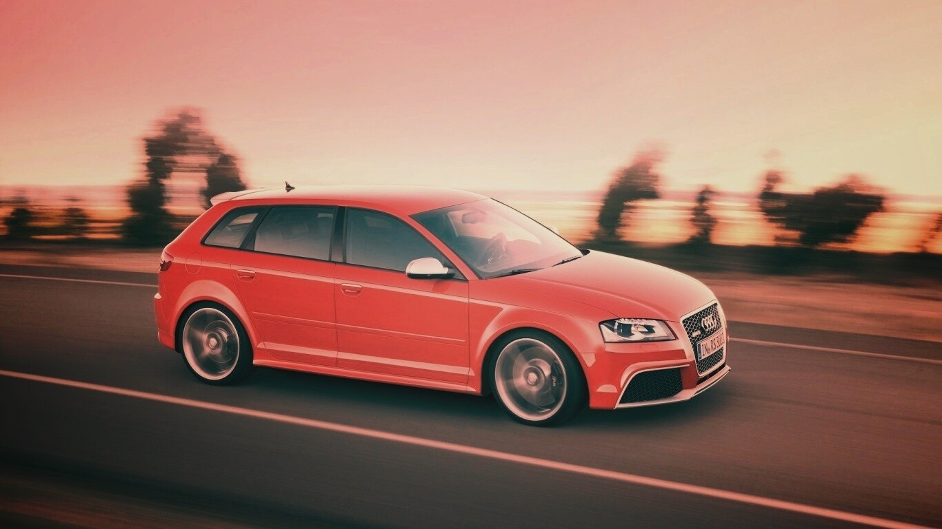 «Красная Audi модели RS3 на дороге»