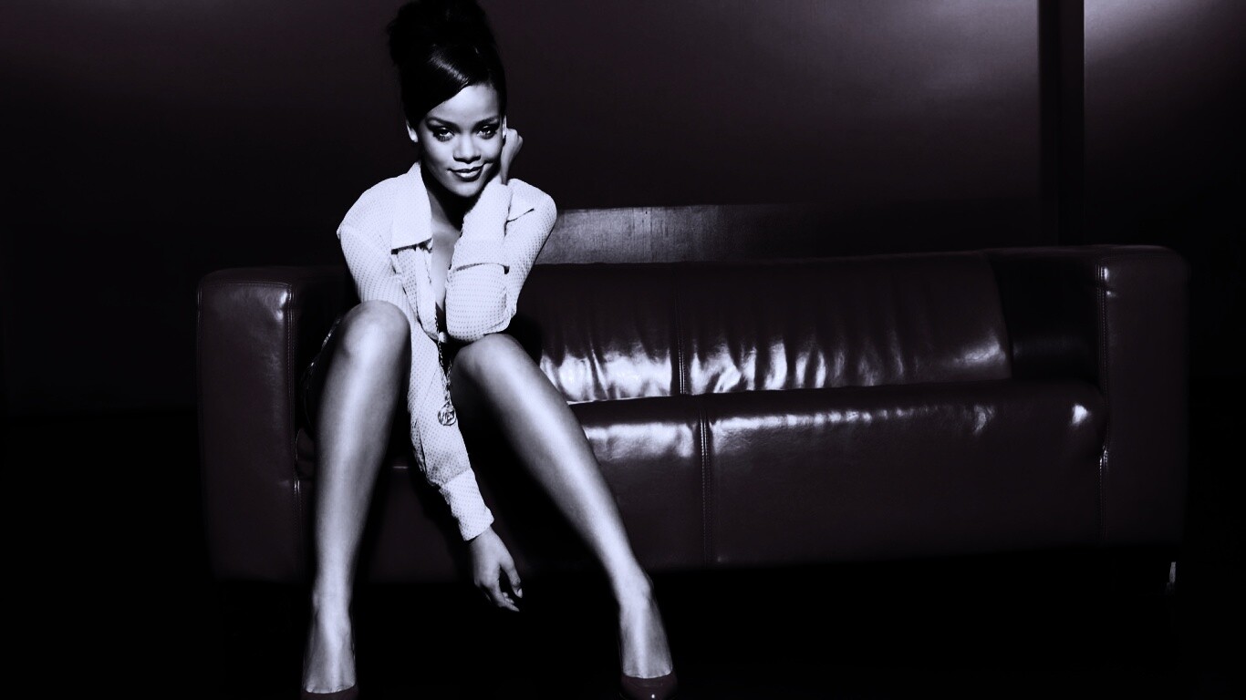 «Рианна на красном кожаном диване»
