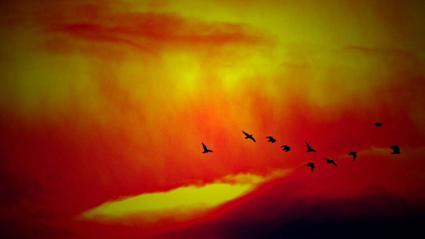 «Птицы летят в закатном небе»