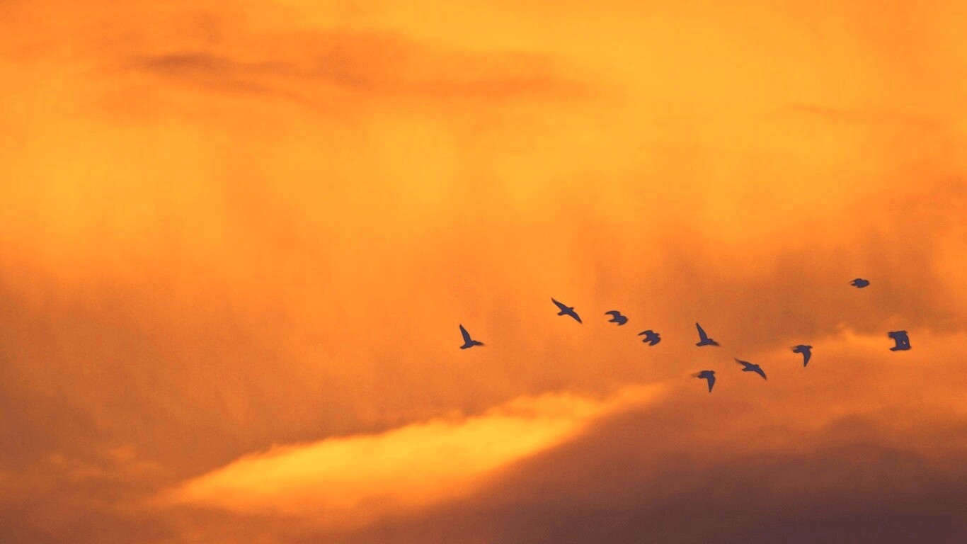 «Птицы летят в закатном небе»