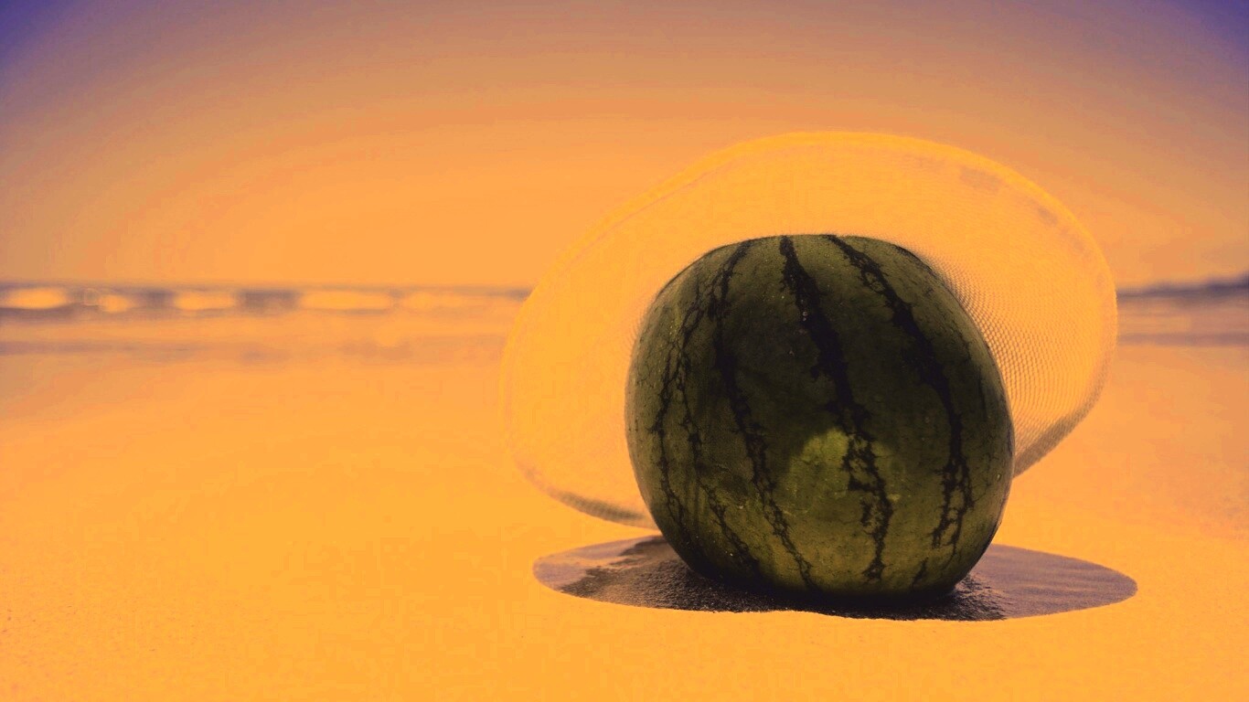 «Арбуз в летней шляпке на пляже»