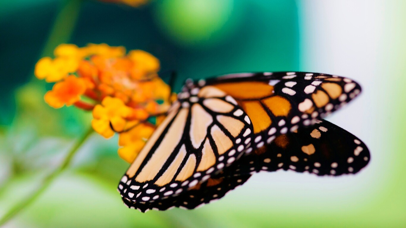 «Бабочка на цветке в макро»