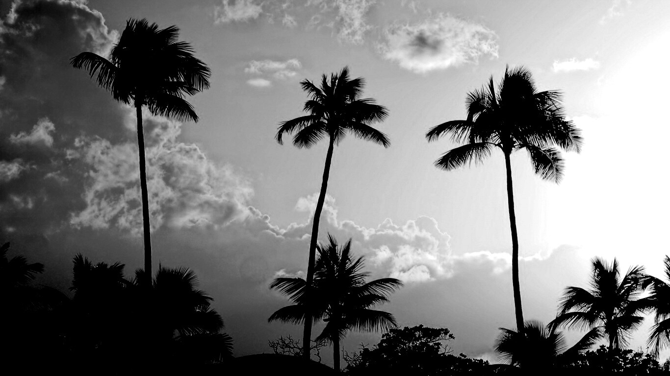 Обои для рабочего стола «Пальмы на закате» 1366х768 с фильтром inkwell (оригинал 1920х1200)