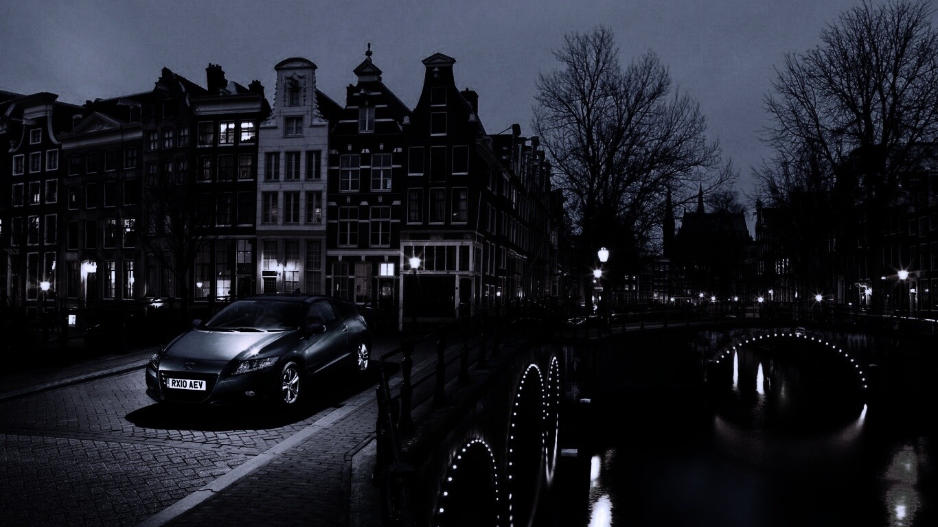 «Автомобиль на мосту в свете фонаря»