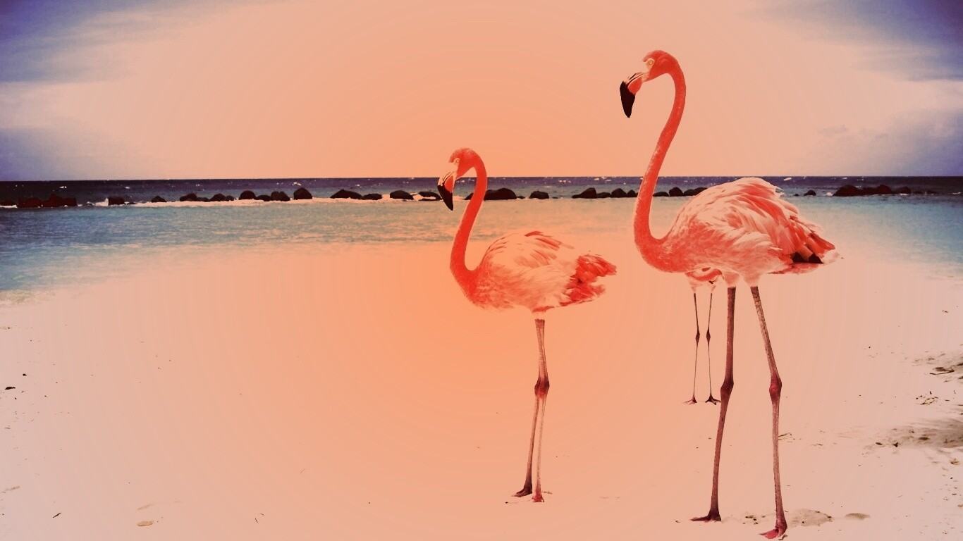 «Розовые фламинго на пляже»