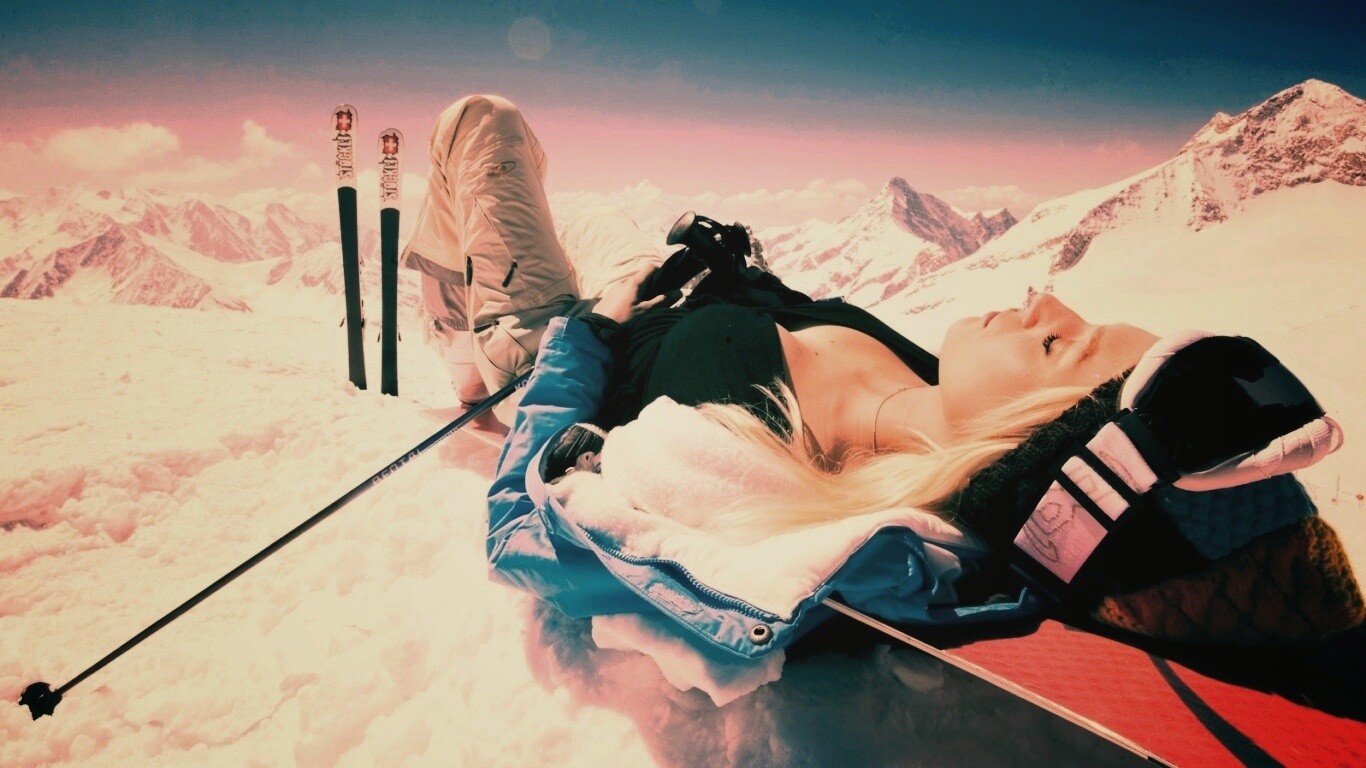 «Лыжница отдыхает в горах»