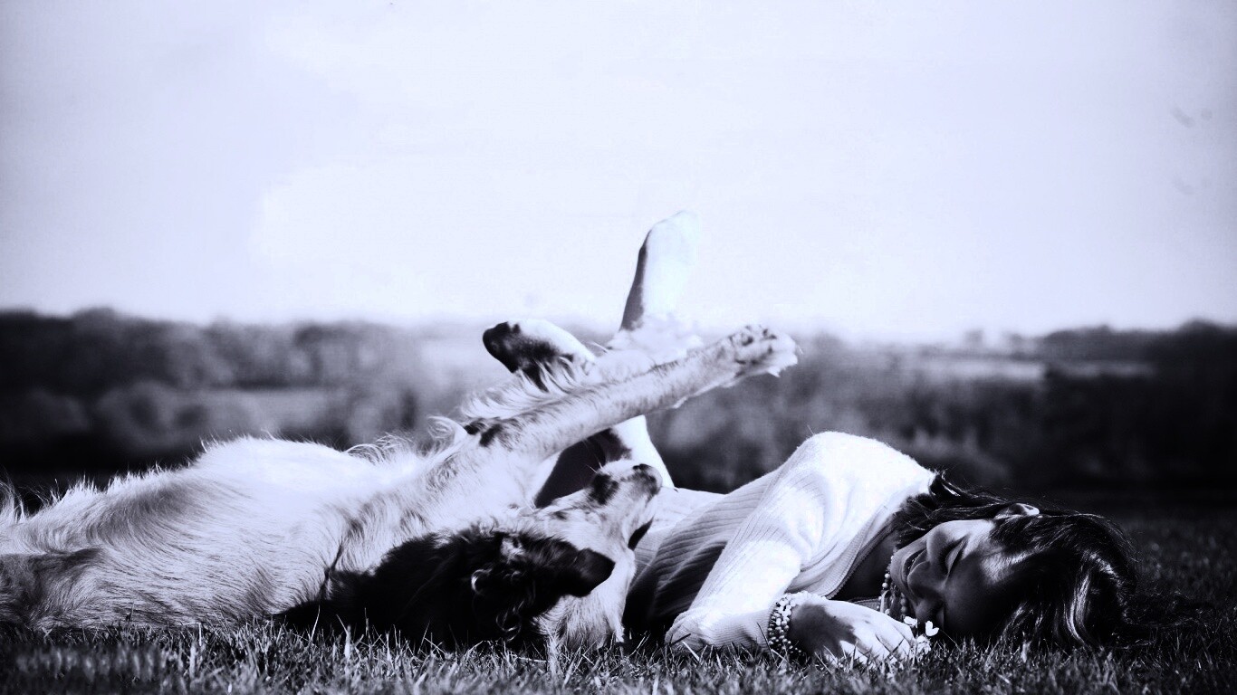 «Девушка и собака валяются на траве»