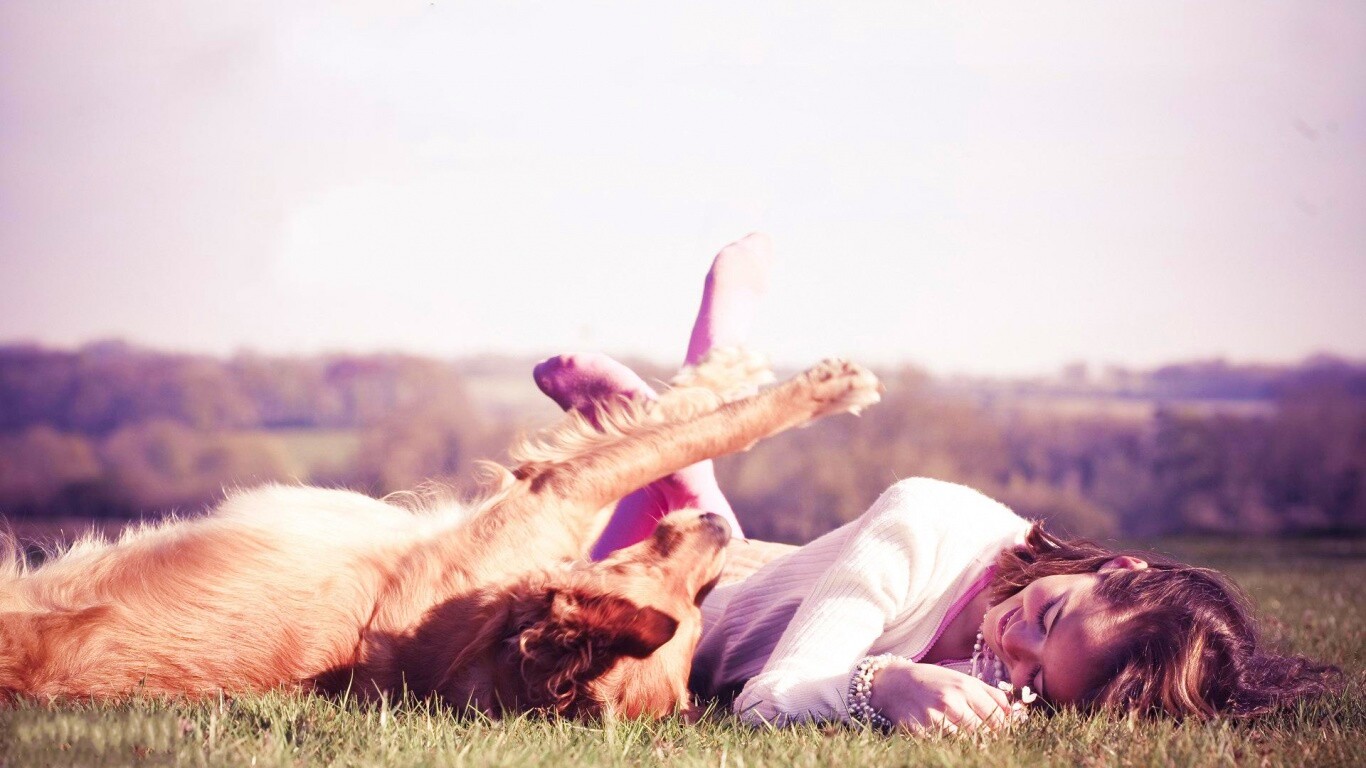 «Девушка и собака валяются на траве»