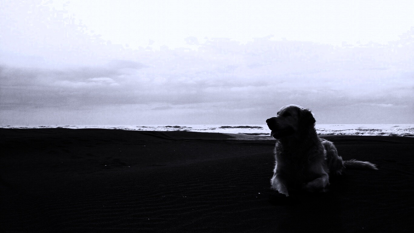 «Красивая собака на оранжевом песке»