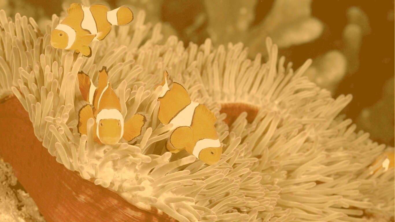 Обои для рабочего стола «Рыбки-клоуны» 1366х768 с фильтром kelvin (оригинал 1920х1200)