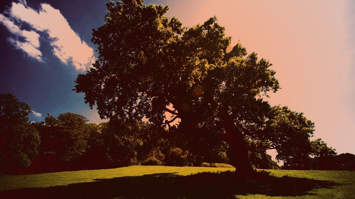 «Большое зеленое дерево на лужайке»
