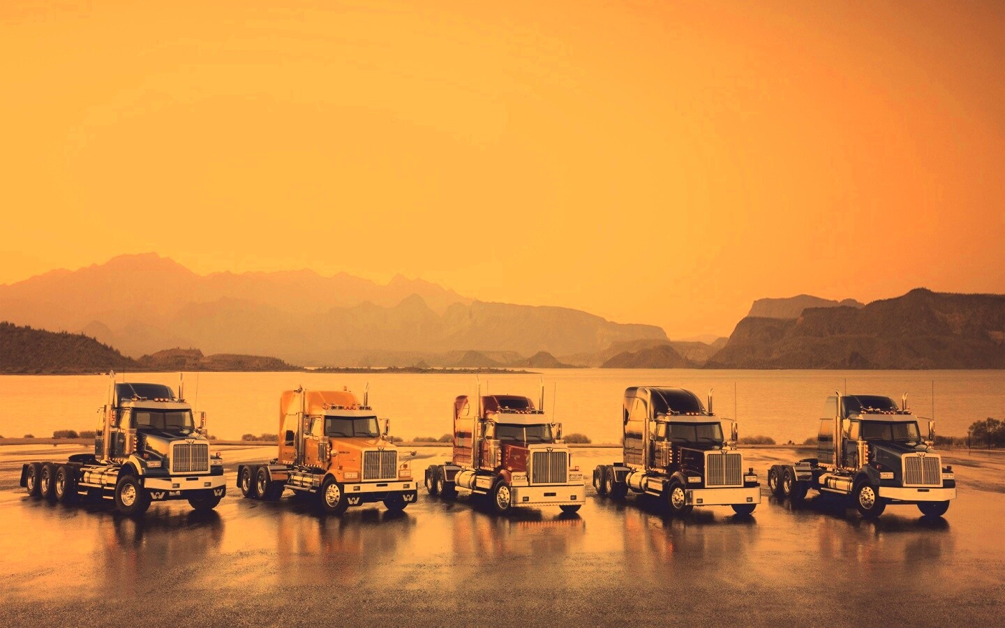 «Тягачи на фоне озера»