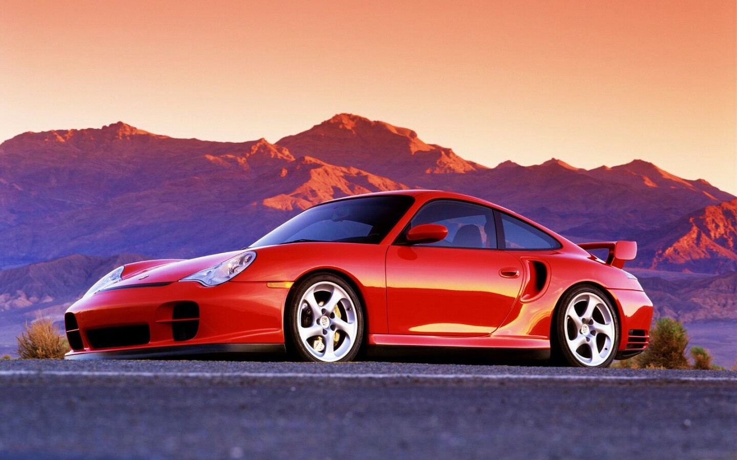 «Красный Порше на фоне гор»