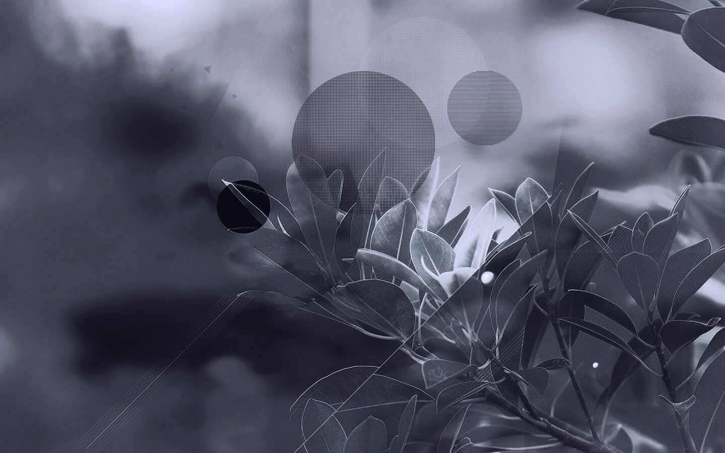 «Синий фильтр с кргуами на фото листьев»