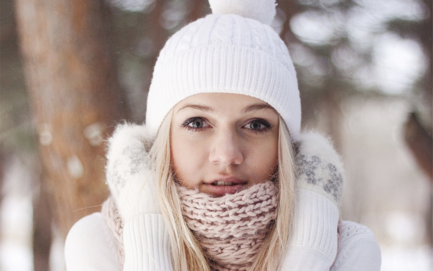 «Девушка в белом в снежном лесу»