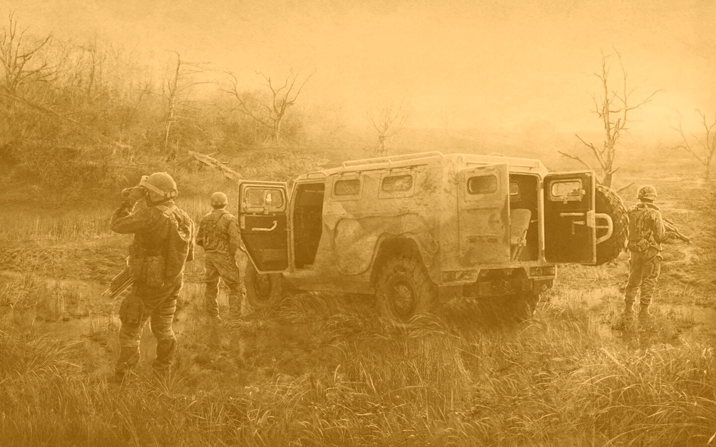 «Солдаты из сталкера на болоте»