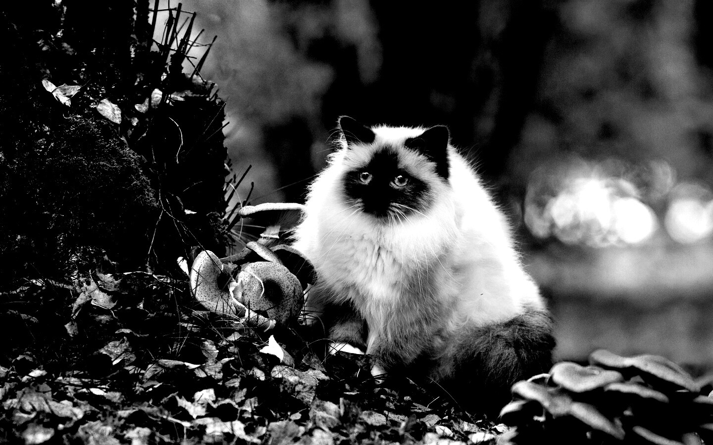 «Пушистый кот среди пожелтевшей листвы»