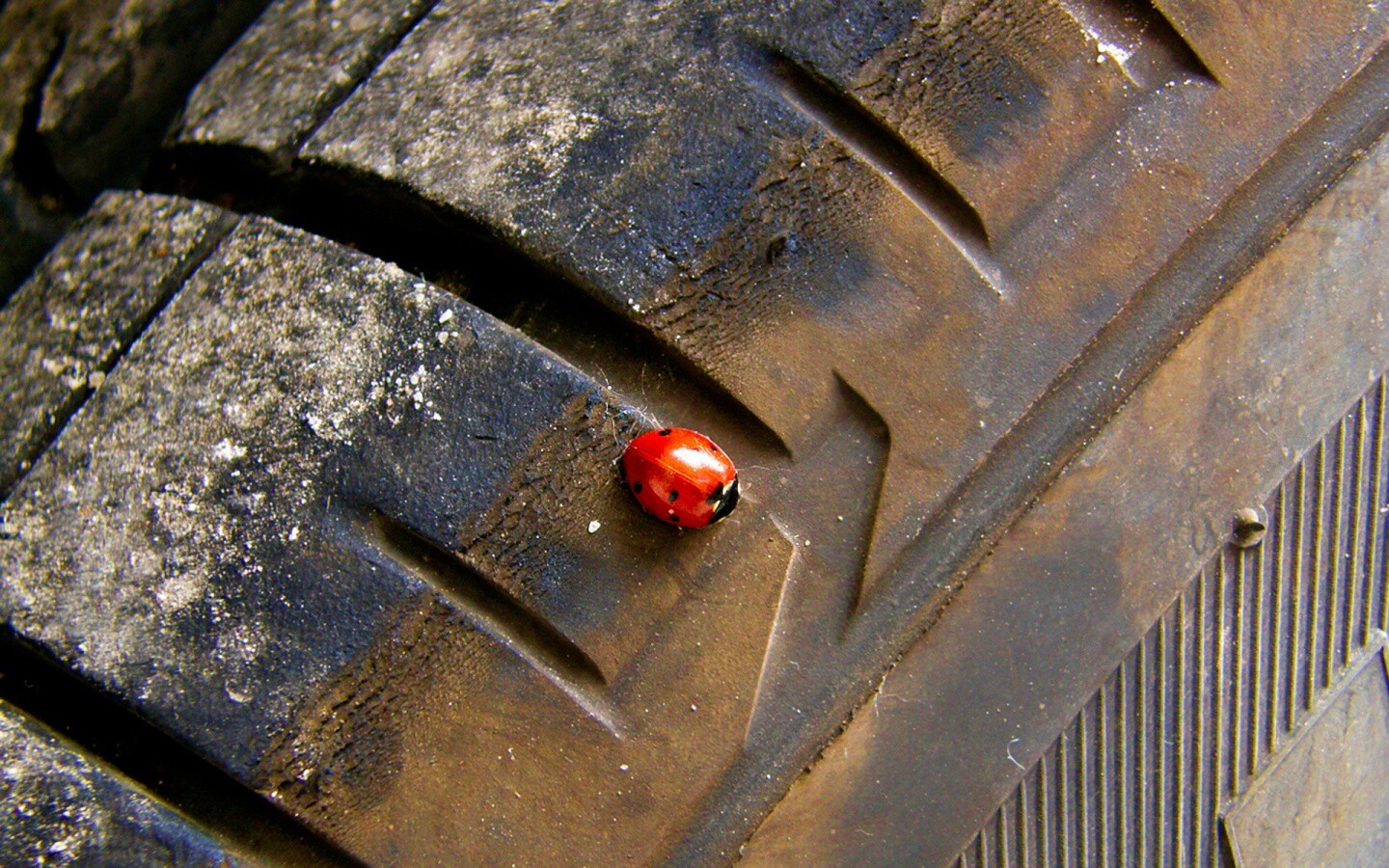 «Божья коровка на автомобильной покрышке»