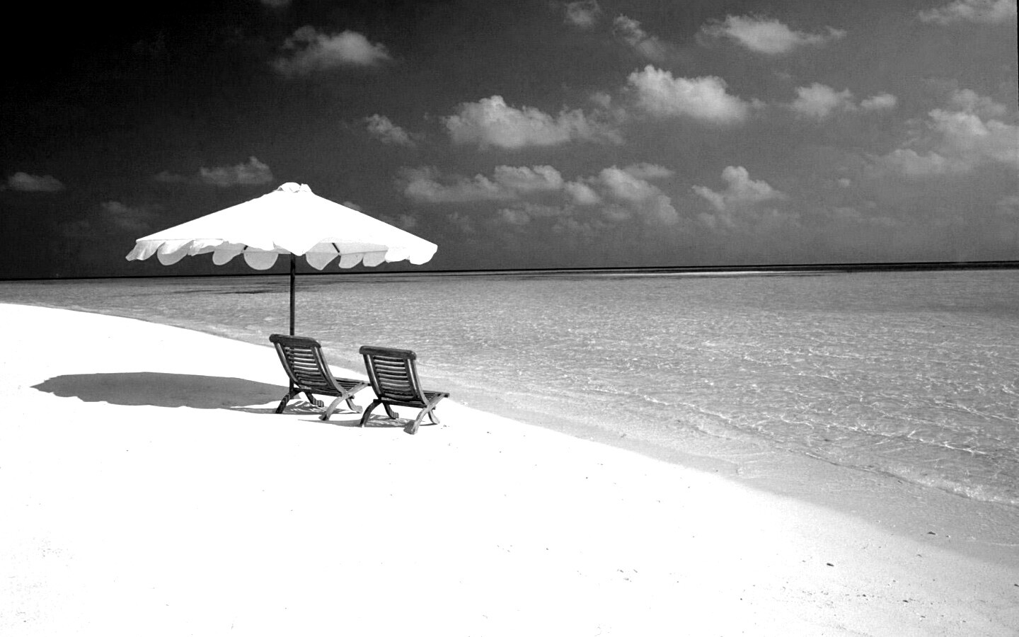 «Песчаный пляж с двумя жезлонгами»