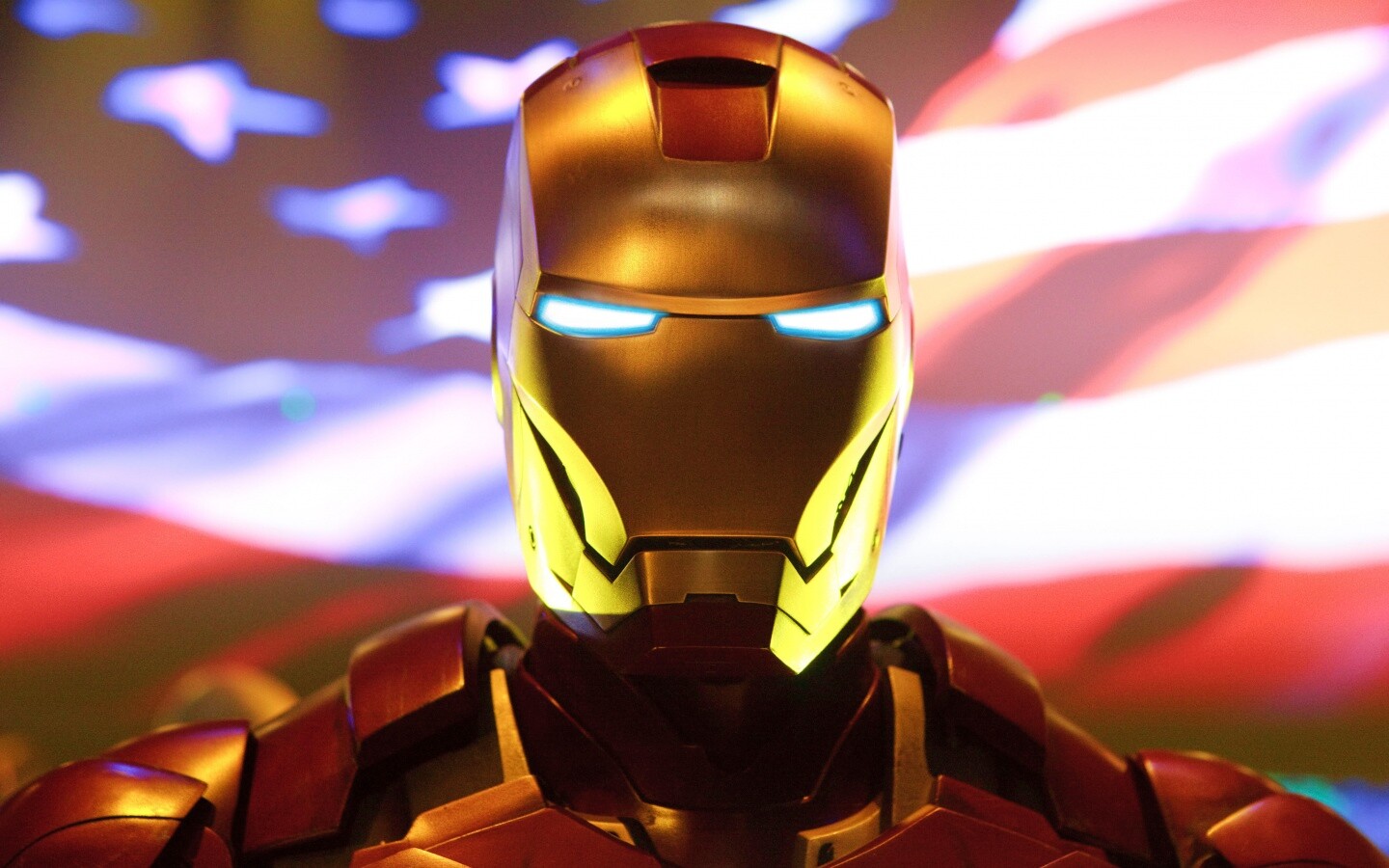«Железный человек на фоне американского флага»